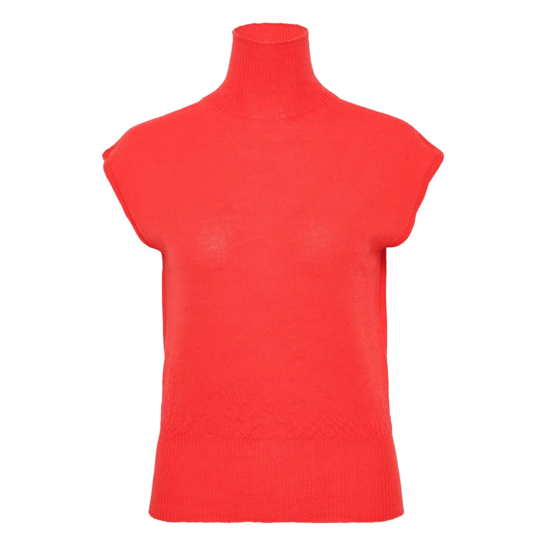 600078874RED00L / RP01F6606/WS/83 - High turtleneck collar - Sleeveless design - Lightweight cashmere construction - Ribbed collar and hem - Relaxed fit through body - Pull-on style Rick Owens Turtle Lightweight Cashmere delivers avant-garde minimalism with luxurious comfort and refined drape. Crafted from premium lightweight cashmere in vibrant coral red, featuring the brand's signature sleeveless silhouette and high turtleneck construction. The architectural cut and soft cashmere blend create a statement piece that embodies Rick Owens' distinctive aesthetic philosophy.