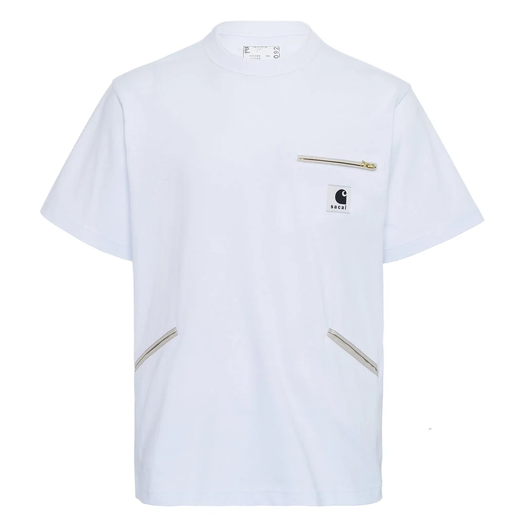 600078528WHT001 / 26-01092S/00/101 - 100% cotton jersey construction - Chest zip pocket with metal hardware - Side zip pocket details - Crew neck design - Short sleeves - Relaxed fit - sacai logo branding Carhartt WIP Cotton Jersey T-Shirt delivers elevated streetwear comfort with premium construction and utilitarian design details. Crafted from soft cotton jersey in crisp white, featuring distinctive zip pocket detailing and the brand's signature workwear-inspired aesthetic. The relaxed fit and quality materials create a versatile wardrobe staple that bridges street style and contemporary fashion.