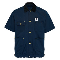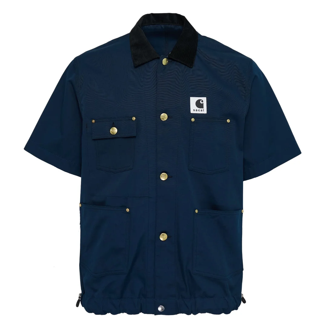 600078575BLU002 / 26-03991M/00/401 - Cotton duck canvas construction - Contrasting black corduroy collar - Gold-tone button closures - Multiple chest and waist pockets - Adjustable drawstring hem - Short sleeve design - Oversized relaxed fit The Carhartt WIP Duck Shirt delivers premium workwear styling with contemporary streetwear appeal. Crafted from durable cotton duck canvas in navy blue with contrasting black corduroy collar and gold-tone hardware throughout. The oversized silhouette and multiple utility pockets create a functional statement piece that bridges workwear heritage with modern urban style.