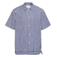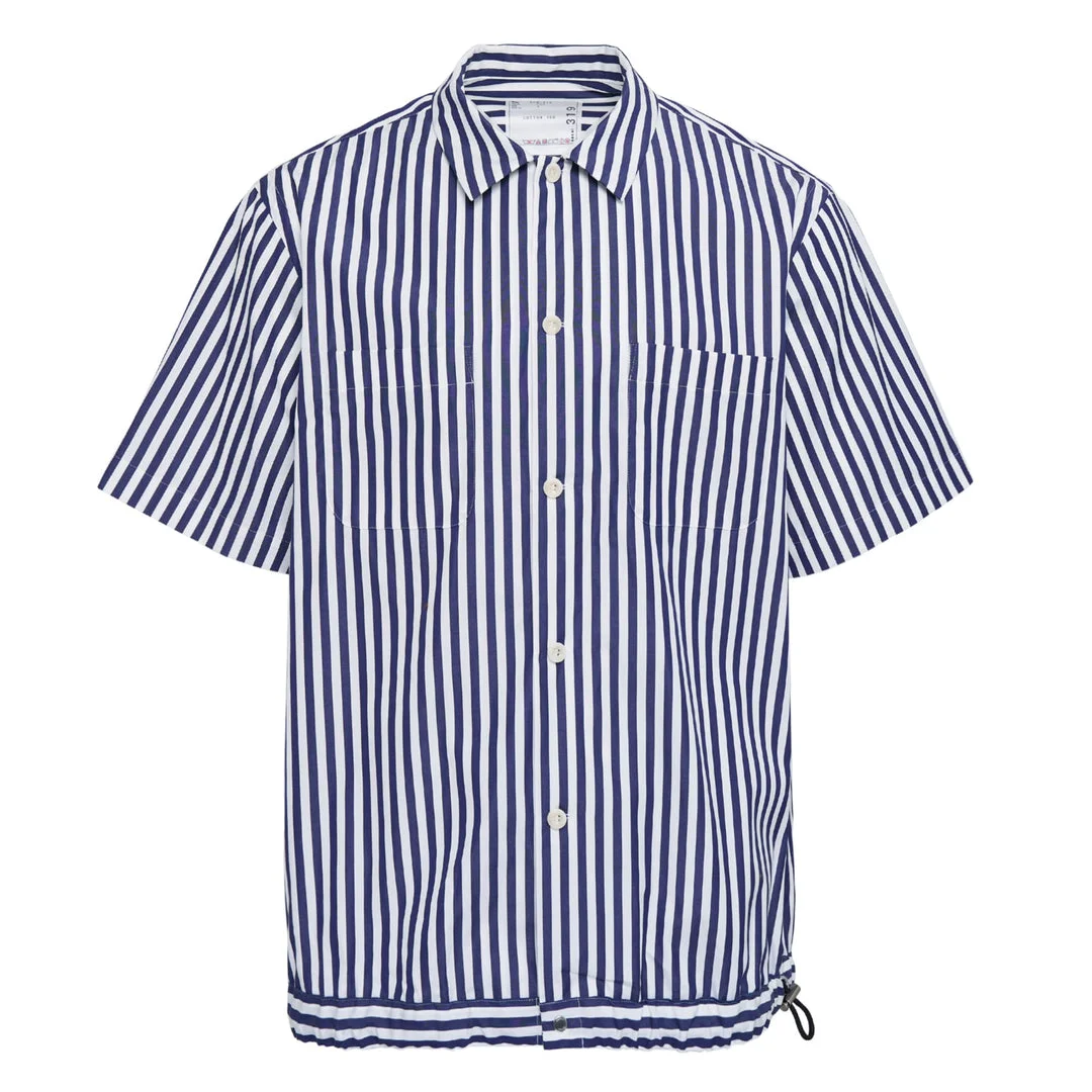 600078090STR001 / SCM-319/00/222 - Vertical navy and white stripe pattern - Classic point collar - Short sleeves - Front button closure - Chest pocket detail - Drawstring hem with contrasting trim - Crisp cotton poplin construction - Regular fit The sacai Cotton Poplin Shirt delivers Japanese avant-garde design with contemporary tailoring and distinctive construction details. Crafted from crisp cotton poplin in navy and white vertical stripes, featuring the brand's signature architectural approach to classic shirting. The structured silhouette and refined proportions create a sophisticated statement piece with sacai's innovative aesthetic.