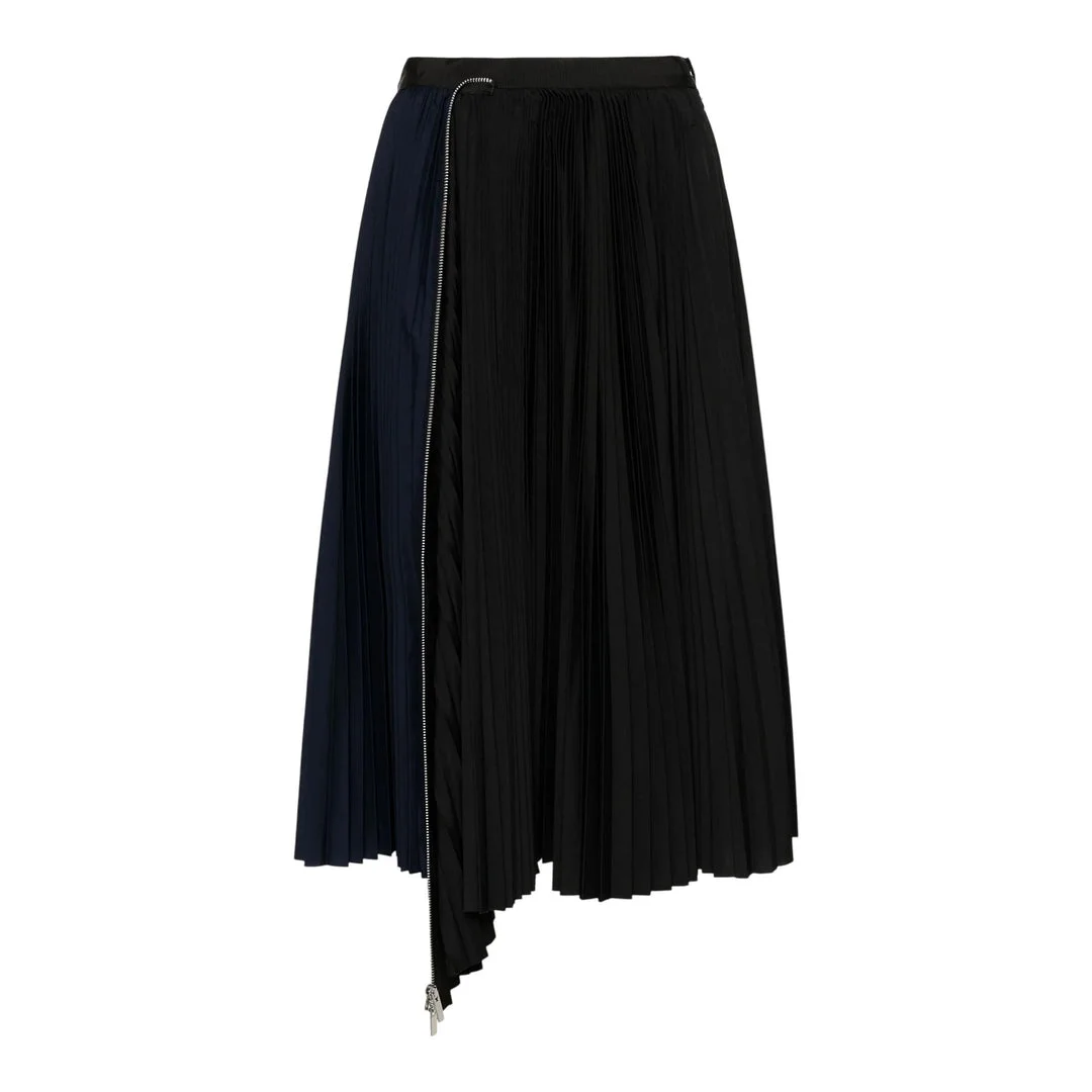300030372BLK-01 / C3SCW-086-001 - Cotton poplin construction - Asymmetrical pleated panels - Exposed zipper closure - Colorblock navy and black design - Midi length - Elastic waistband - Unlined finish The sacai Cotton Poplin Zipper Skirt delivers avant-garde sophistication with architectural construction and contemporary functionality. Crafted from premium cotton poplin in deep navy and black colorblocking, featuring asymmetrical pleating and exposed zipper detailing throughout. The deconstructed silhouette and signature sacai aesthetic create a statement piece for modern wardrobes.