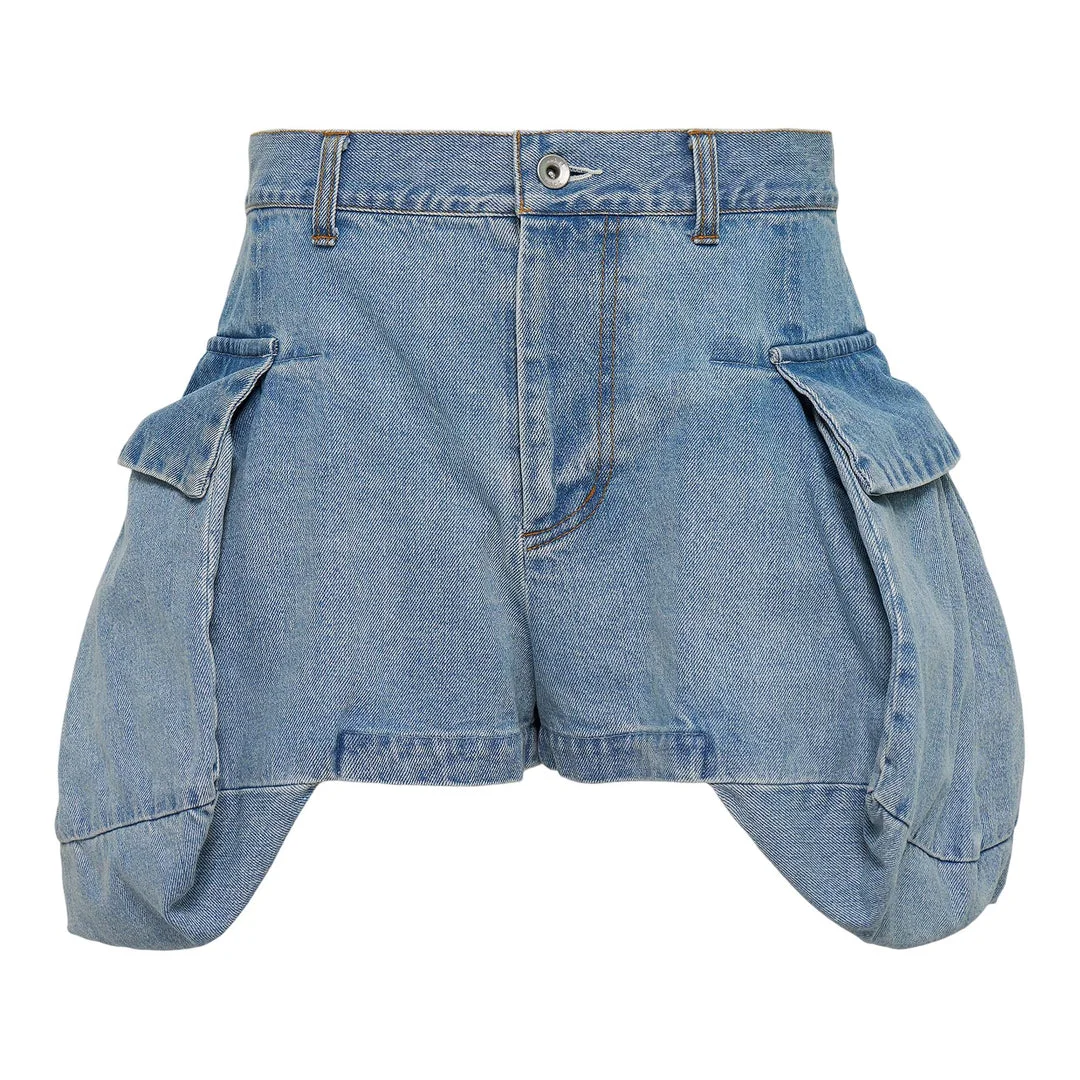600069956LBL001 / 25-07967/00/451 - High-waisted silhouette - Button and zip front closure - Ruffle hem details - Deconstructed design elements - Premium washed denim construction - Structured fit sacai Denim Shorts deliver avant-garde streetwear with architectural construction and innovative silhouette. Crafted from premium washed denim with distinctive ruffle details and deconstructed elements throughout. The signature sacai aesthetic combines traditional denim craftsmanship with contemporary Japanese design philosophy.