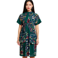 600069961GRN001 / 25-07978/00/551 - Mock turtleneck collar - Short sleeves - Asymmetric tiered hemline - Mixed print and solid panel construction - Lightweight woven fabric - Relaxed fit through body - Side seam detailing The sacai Floral Print Dress delivers avant-garde femininity with the brand's signature hybrid construction and innovative silhouette. Crafted from lightweight woven fabric in rich forest green with intricate paisley and floral motifs throughout, featuring contrasting solid panels and architectural draping. The short sleeves and asymmetric hemline create a contemporary statement piece that embodies sacai's deconstructed luxury aesthetic.