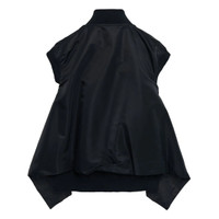 600078416BLK001 / 26-08305/00/001 - Front zip closure - Stand collar - Sleeveless design - Asymmetrical hemline - Side pockets - Lightweight nylon twill construction - Oversized fit sacai Nylon Twill Vest delivers avant-garde layering with architectural construction and contemporary functionality. Crafted from lightweight nylon twill in sophisticated black, featuring signature asymmetrical hemline and structured silhouette. The oversized fit and deconstructed design elements create a statement piece that embodies sacai's innovative approach to modern fashion.