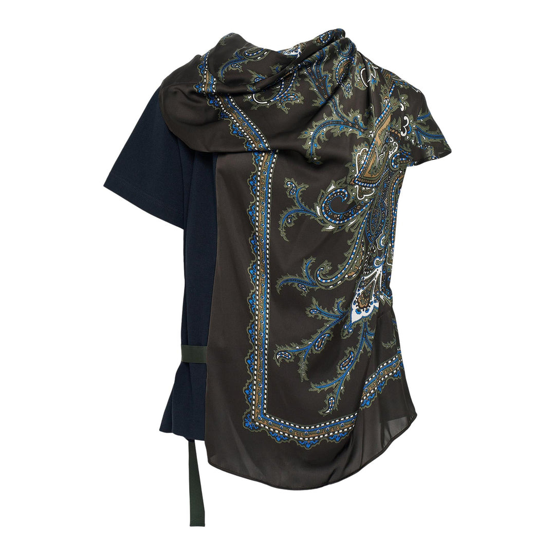 Paisley Print Cotton Jersey T-Shirt in Navy/Khaki