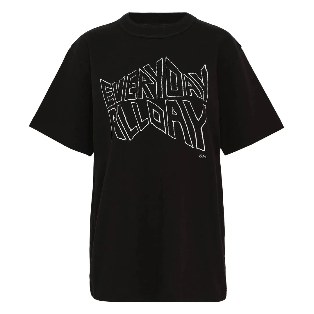 600078579BLK001 / M-26-01121S/00/001 - Bold white graphic print on front - Outlined typography design - Short sleeves - Crew neckline - Premium cotton construction - Oversized relaxed fit - Small brand logo detail The sacai Print T-Shirt delivers avant-garde streetwear with the brand's signature graphic typography and contemporary Japanese design. Crafted from premium cotton in deep black, featuring bold white outlined lettering that creates a striking visual impact. The oversized silhouette and artistic print aesthetic showcase sacai's innovative approach to elevated casual wear.
