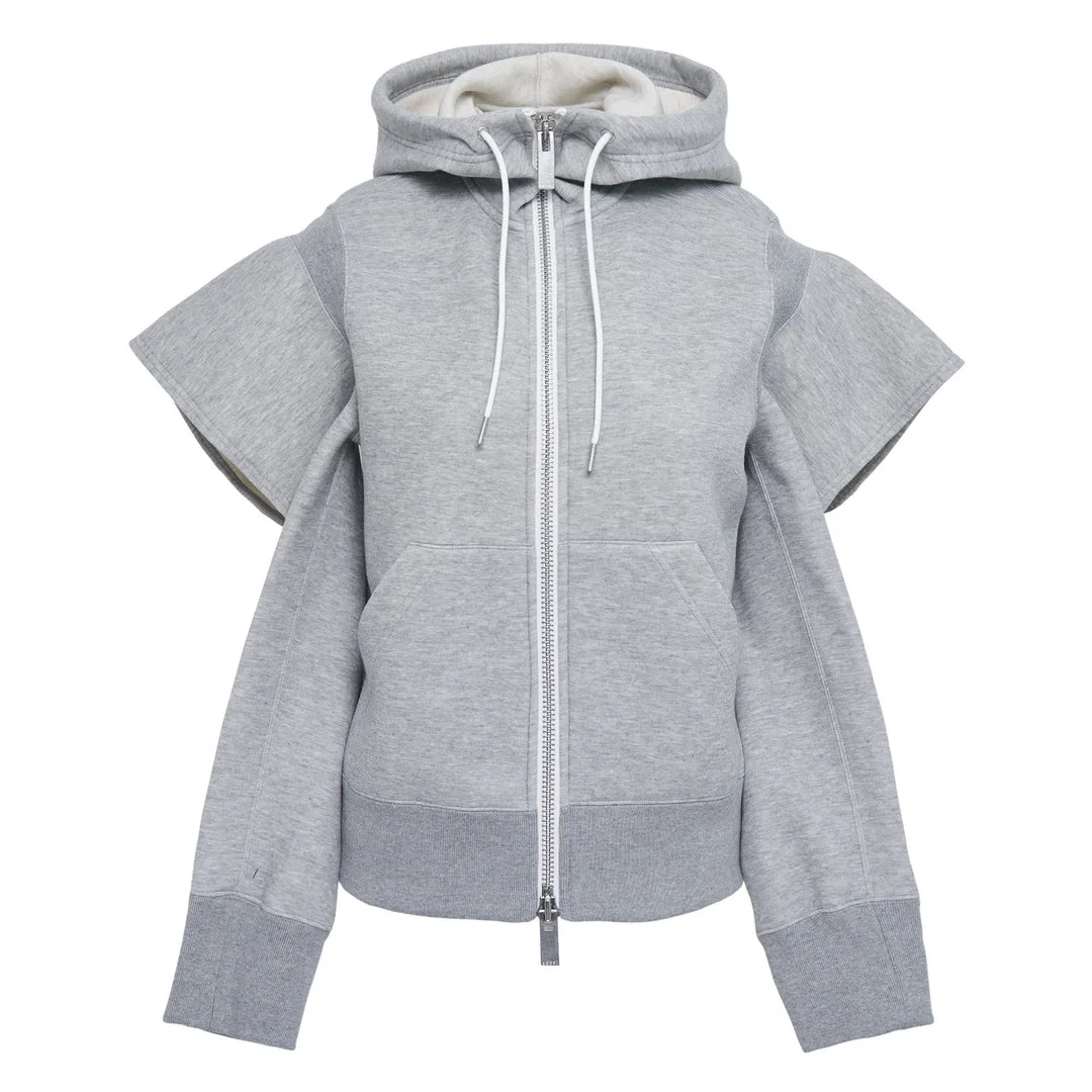 600078432LGY001 / 26-08345/00/376 - Full zip closure - Adjustable drawstring hood - Front kangaroo pocket - Contrasting sleeve panel construction - Cotton sponge fleece material - Ribbed cuffs and hem - Relaxed fit The sacai Sponge Sweat Hoodie delivers avant-garde comfort with innovative hybrid construction and signature layered design. Crafted from premium cotton sponge fleece in heather grey, featuring contrasting sleeve panels and deconstructed hood detailing. The architectural silhouette and sacai's signature fabric mixing create a contemporary statement piece for modern wardrobes.