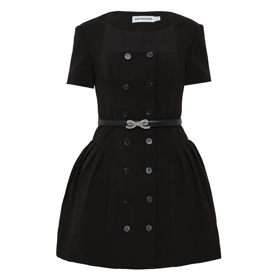 Self-Portrait Black Crepe Short Sleeve Mini Dress