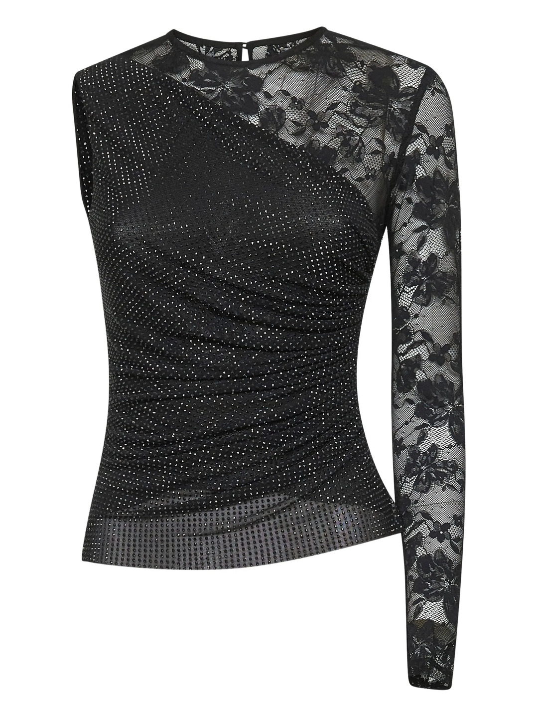 Self-Portrait Black Rhinestone Lace Sleeve Top