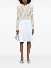 300041313BLU-06 / A4AW24-060MSK-BL/00/BLUE - Premium satin construction - Knife pleat detailing throughout - Midi length design - Concealed side zip closure - Fully lined interior - A-line silhouette Self-Portrait Blue Satin Midi Skirt delivers feminine elegance with sophisticated pleated construction and luxurious drape. Crafted from premium satin fabric in soft powder blue, featuring precise knife pleats that create beautiful movement and structure. The midi length and high-quality finish embody the brand's signature contemporary femininity perfect for special occasions.
