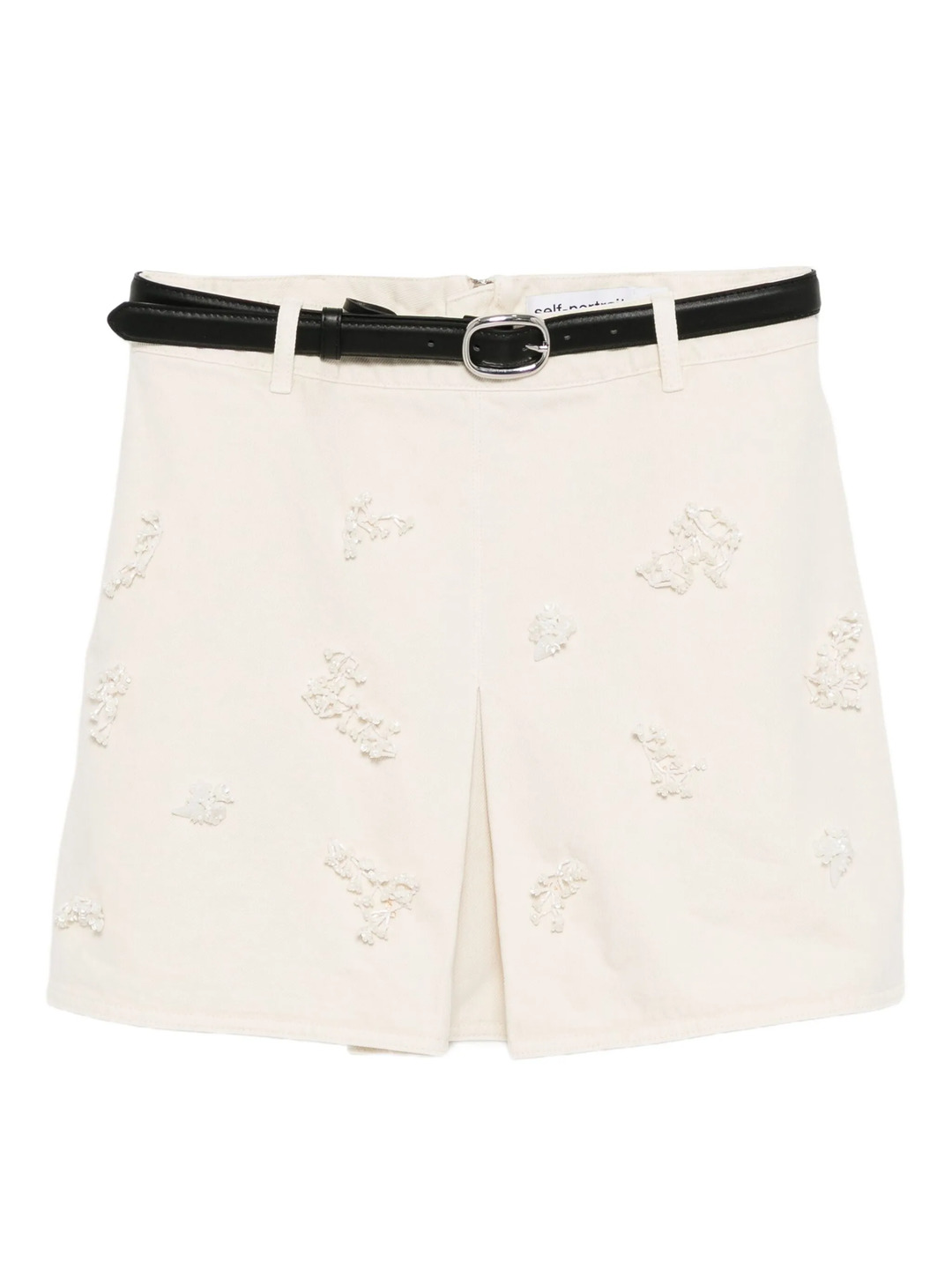 Self-Portrait Cream Denim Beaded Floral Mini Skirt