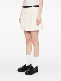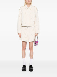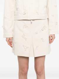 Cream Denim Beaded Floral Mini Skirt