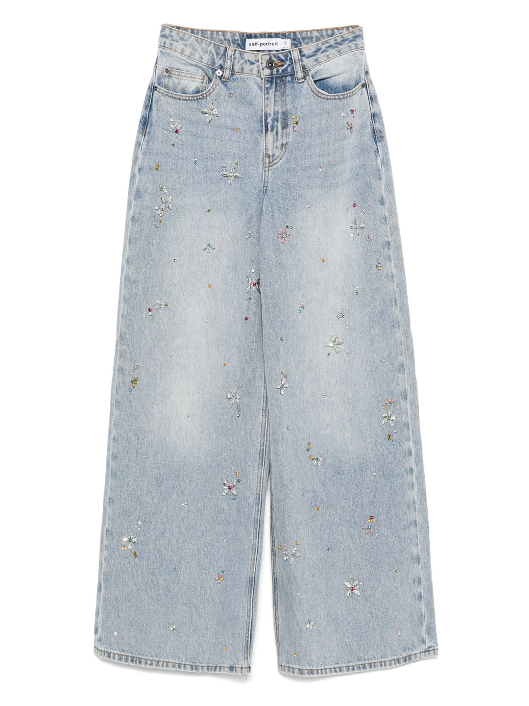 Self-Portrait Light Blue Embellished Wide Leg Jeans