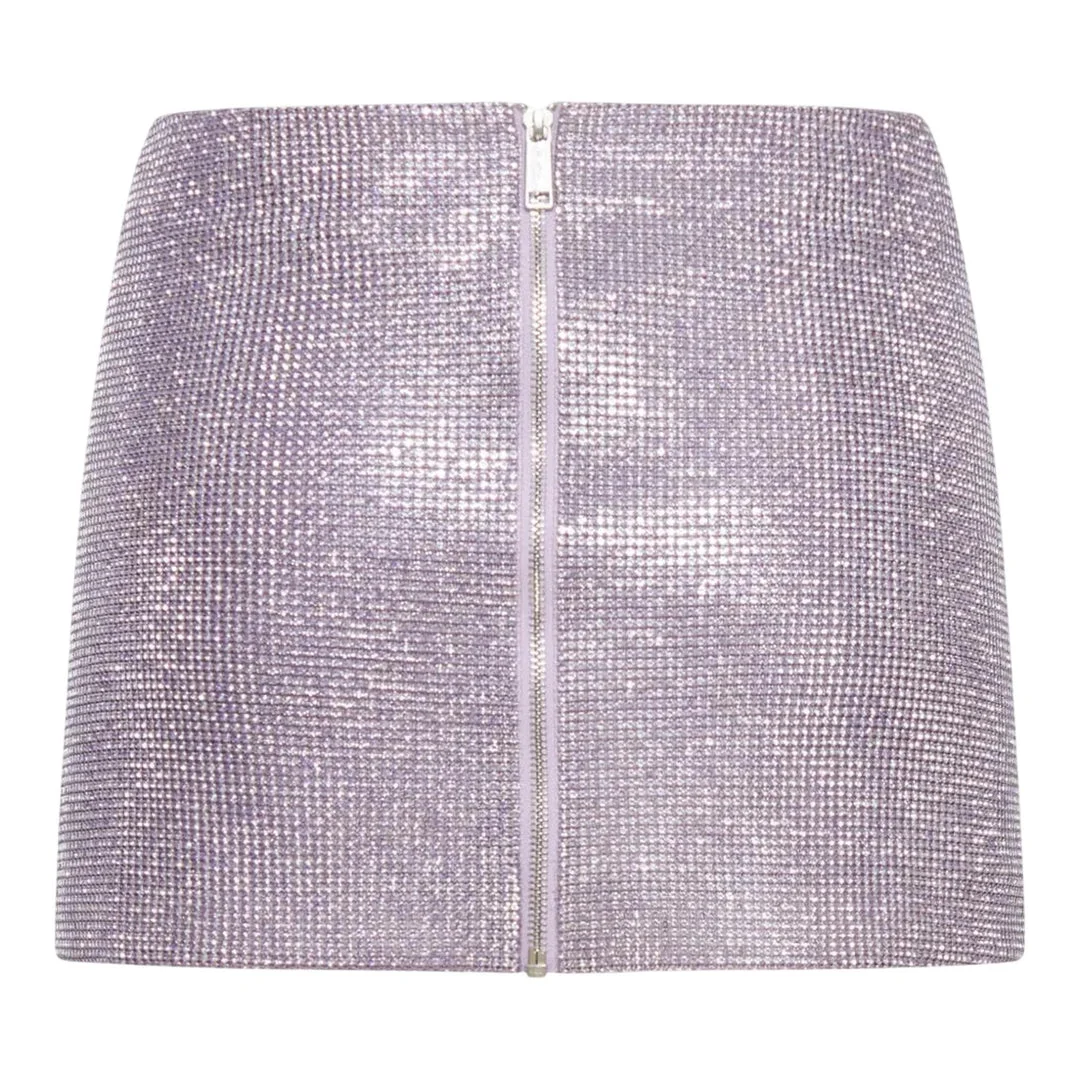 600070591LIL006 / PF25-023SK-L/00/LILAC - Metallic chainmail construction - Front zip closure - Mini length silhouette - High-waisted design - Fitted bodycon cut - Lined interior The Self-Portrait Lilac Chainmail Skirt delivers contemporary glamour with metallic mesh construction and modern femininity. Crafted from intricately linked metallic chainmail in soft lilac tones, featuring a structured mini silhouette that catches light beautifully. The front zip closure and body-conscious fit create a bold statement piece perfect for evening occasions.