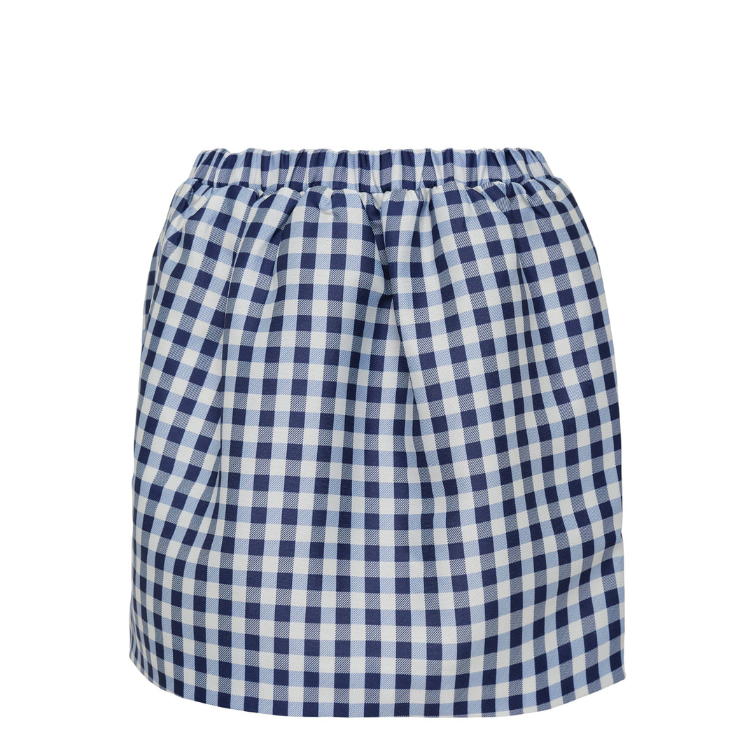 Navy Gingham Taffeta Mini Skirt