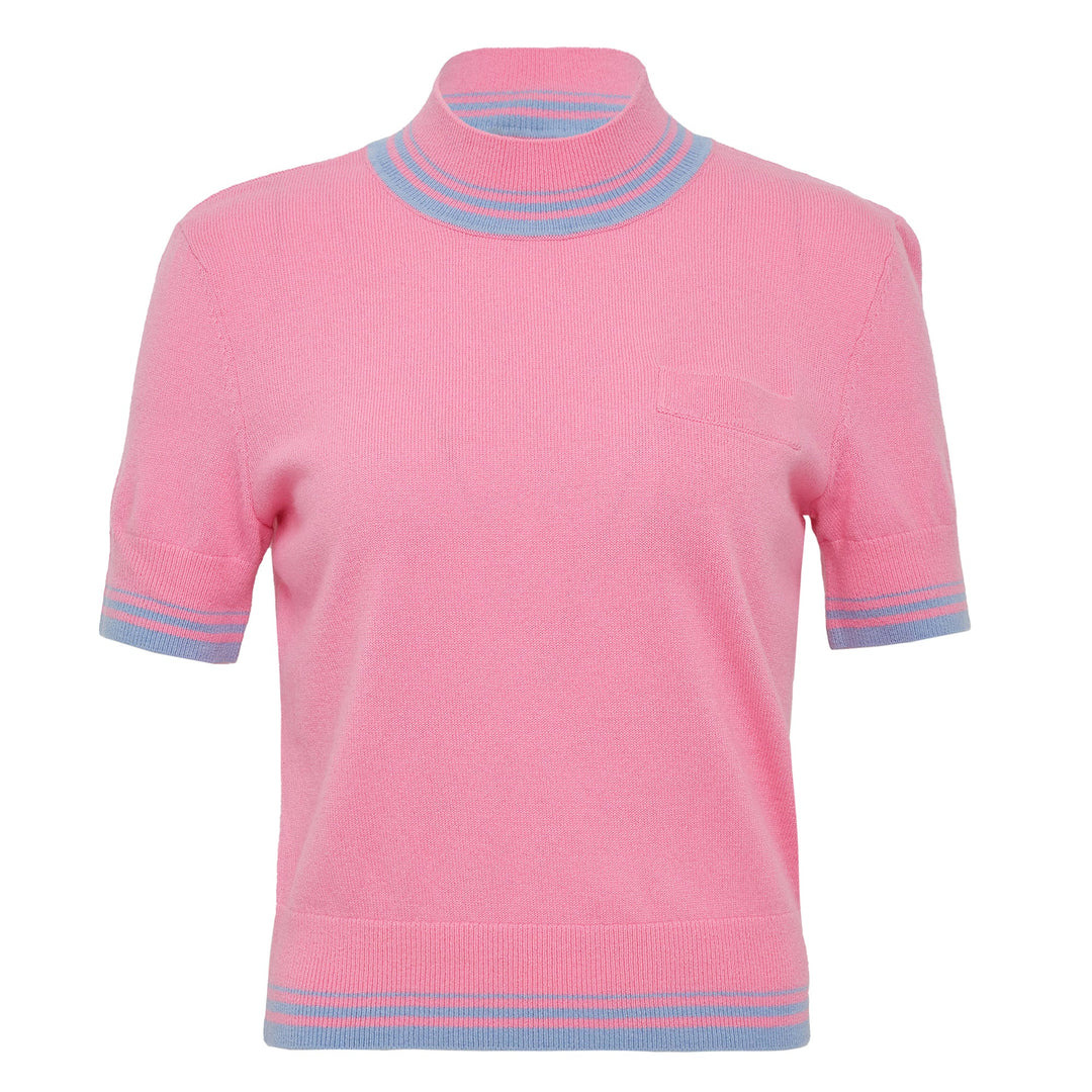 Pink Contrast Stripe Knit Top