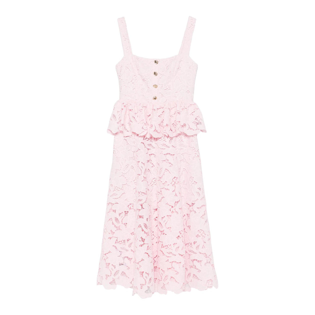 Self-Portrait Pink Lace Peplum Midi Dress