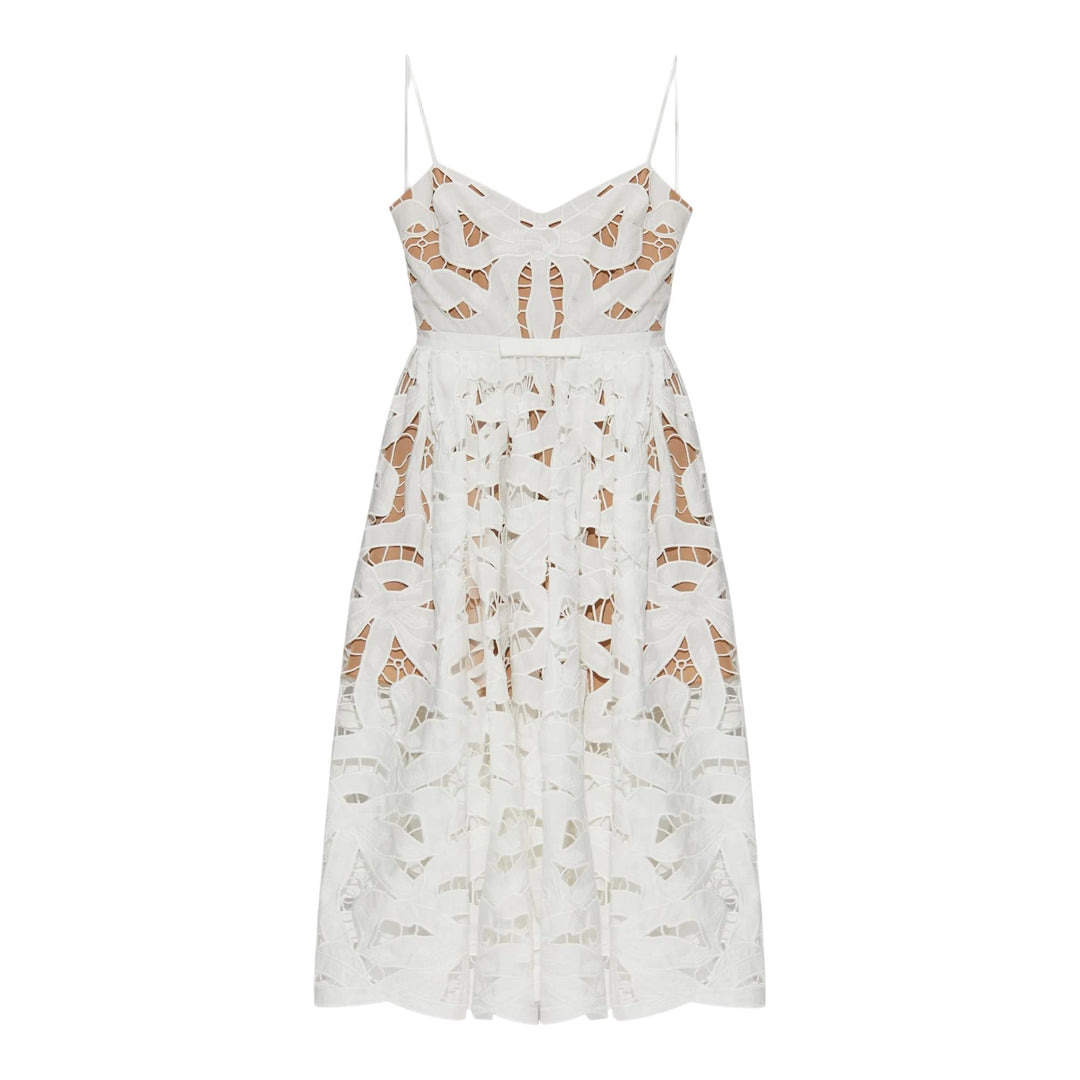 Self-Portrait White Bow Embroidered Midi Dress