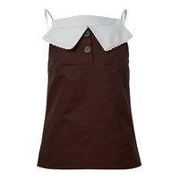 600073873BRN006 / MWDETO07/BPP565/BN100 - Fan-shaped turn-down collar in white - Two decorative buttons on collar - Adjustable thin shoulder straps - Brown woven fabric construction - Straight-cut silhouette - Sleeveless design SHUSHU/TONG Fan-Shaped Turn-Down Collar Camisole Top delivers contemporary feminine design with playful architectural details. Crafted from smooth woven fabric in sophisticated brown, featuring a distinctive white fan-shaped collar with decorative button closure. The contrasting collar element and streamlined silhouette create a modern take on classic camisole styling.