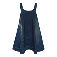 600071770DNM008 / 7412B 1231D/00/DISTRESSED BLUE - Sleeveless tank-style construction - Scoop neckline - A-line silhouette - Strategic distressing and frayed details - Mid-weight denim fabric - Mini length - Classic indigo wash The Simone Rocha A-Line Denim Mini Dress delivers contemporary femininity with deconstructed denim craftsmanship. Crafted from premium mid-weight denim in classic indigo wash, featuring strategic distressing and frayed details for textural contrast. The sleeveless A-line silhouette creates a flattering feminine shape while maintaining the brand's signature romantic edge.