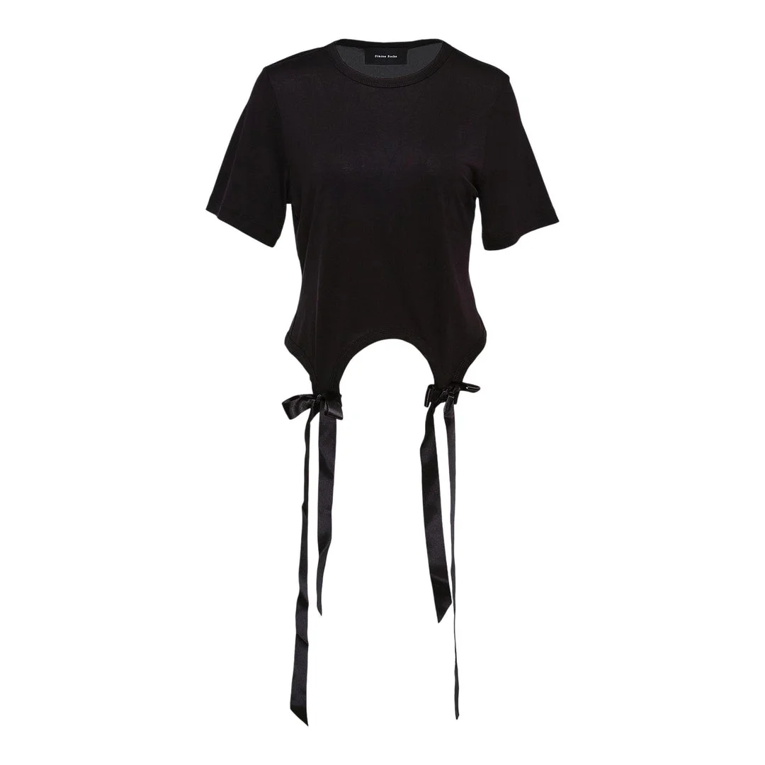 Simone Rocha Bow Tail Easy T-Shirt A cropped t-shirt in a soft fine jersey fabrication. Designed for a more fitted silhouette, featuring long satin bow tails at the front.