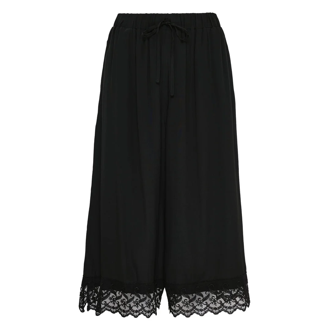 600081494BLK004 / 4178T 0514/00/BLACK - Elasticated waistband with drawstring tie - Intricate lace trim at cropped hemline - Relaxed straight-leg silhouette - Premium black fabric construction - Mid-rise fit - Decorative scalloped lace detailing Simone Rocha Cropped Lace Trim Trousers deliver feminine romanticism with contemporary tailoring and signature decorative detailing. Crafted from premium black fabric with intricate lace trim along the cropped hemline, featuring an elasticated waistband with adjustable drawstring. The relaxed silhouette and delicate lace overlay create a sophisticated balance between comfort and elevated design.