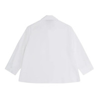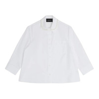 600071760WHT008 / 5372B 1025/00/WHITE/PEARL - Pearl-embellished collar detail - Three-quarter length sleeves - Cropped hemline - Button-front closure - Classic point collar - Structured cotton poplin construction - Relaxed masculine fit Simone Rocha Cropped Masculine Shirt delivers contemporary femininity through deconstructed tailoring and refined silhouettes. Crafted from crisp cotton poplin in pristine white, featuring delicate pearl collar detailing and three-quarter sleeves. The cropped proportions and feminine touches transform classic shirting into a signature romantic statement piece.