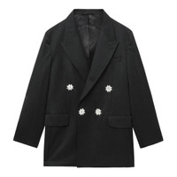 600071540CHA00S / 6133DB 1217/00/CHARCOAL/PEARL - Double-breasted closure with decorative pearl floral buttons - Peak lapels with structured shoulders - Long sleeves with traditional cuffs - Front welt pockets - Fully lined interior - Tailored fit - Premium suiting fabric construction The Simone Rocha Double Breasted Jacket delivers sophisticated tailoring with feminine architectural details and contemporary elegance. Crafted from premium black suiting fabric with structured shoulders and precise construction, featuring distinctive pearl-like floral button embellishments. The classic double-breasted silhouette combines traditional menswear codes with Simone Rocha's signature romantic aesthetic.