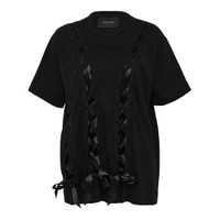 600071759BLK0XS / 5368 0553/00/BLACK - Unraveling ribbon embellishments - Short sleeves - Regular fit - Round neckline - Soft cotton jersey construction - Deconstructed design details Simone Rocha Unraveling Ribbon T-Shirt delivers deconstructed femininity with avant-garde detail and romantic texture. Crafted from soft cotton jersey in deep black, featuring intricate unraveling ribbon embellishments that cascade down the front. The signature Simone Rocha aesthetic combines gothic romance with contemporary craftsmanship for a distinctive statement piece.