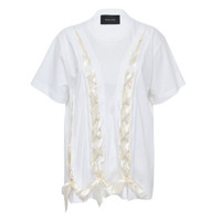 600071759WHT00M / 5368 0553/00/WHITE - Premium cotton construction - Cascading ribbon tie details - Short sleeve design - Relaxed fit - Unraveling ribbon elements - Signature Simone Rocha aesthetic Simone Rocha Unraveling Ribbon T-Shirt delivers romantic femininity with avant-garde construction and signature ribbon detailing. Crafted from premium cotton in crisp white, featuring cascading ribbon ties that create movement and texture throughout the garment. The deconstructed ribbon elements and sculptural silhouette showcase the brand's distinctive approach to contemporary feminine design.
