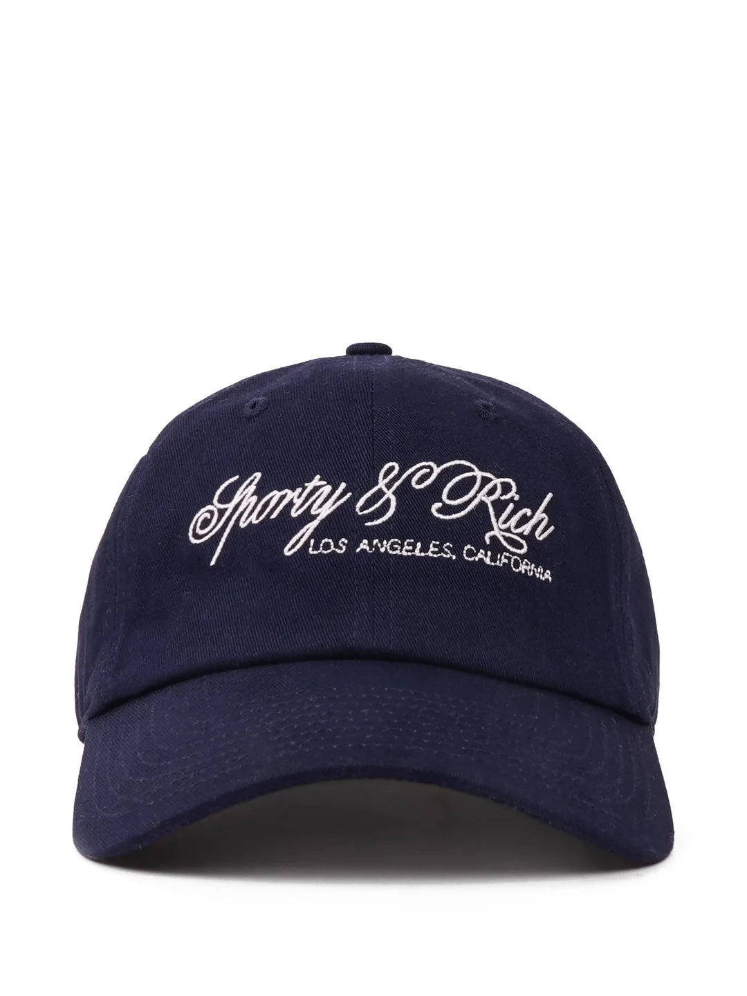 300050577NVY-NS / E6AC07965264BL106/00/3902 - Six-panel construction - Embroidered front branding - Adjustable back strap closure - Pre-curved visor - Cotton twill construction - Unstructured crown - Metal eyelets for ventilation The Sporty & Rich International Hat delivers elevated streetwear style with premium construction and minimalist design. Crafted from durable cotton twill in classic navy, featuring embroidered Los Angeles California branding in contrasting white thread. The six-panel construction and adjustable strap closure create the perfect balance of comfort and contemporary luxury.