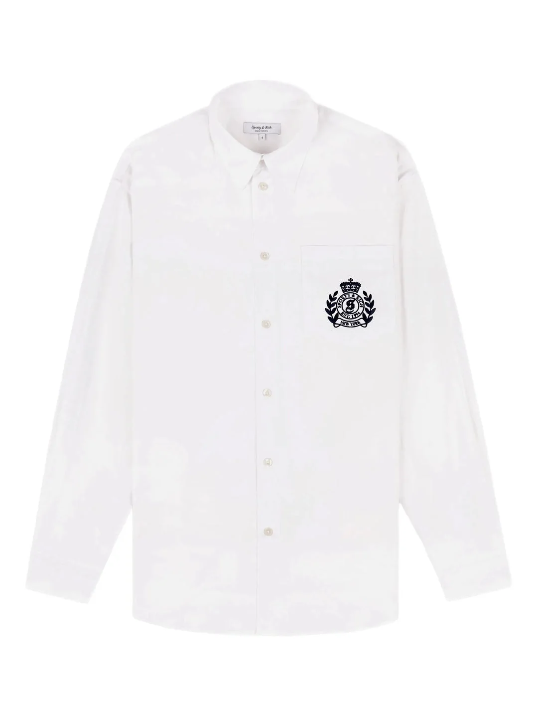 The Sporty & Rich NY Crest Oversized Shirt delivers relaxed luxury with contemporary streetwear appeal. Crafted from premium crisp cotton poplin in classic white, featuring an embroidered NY crest logo on the chest. The oversized silhouette and signature Sporty & Rich detailing create an elevated casual essential for modern wardrobes.