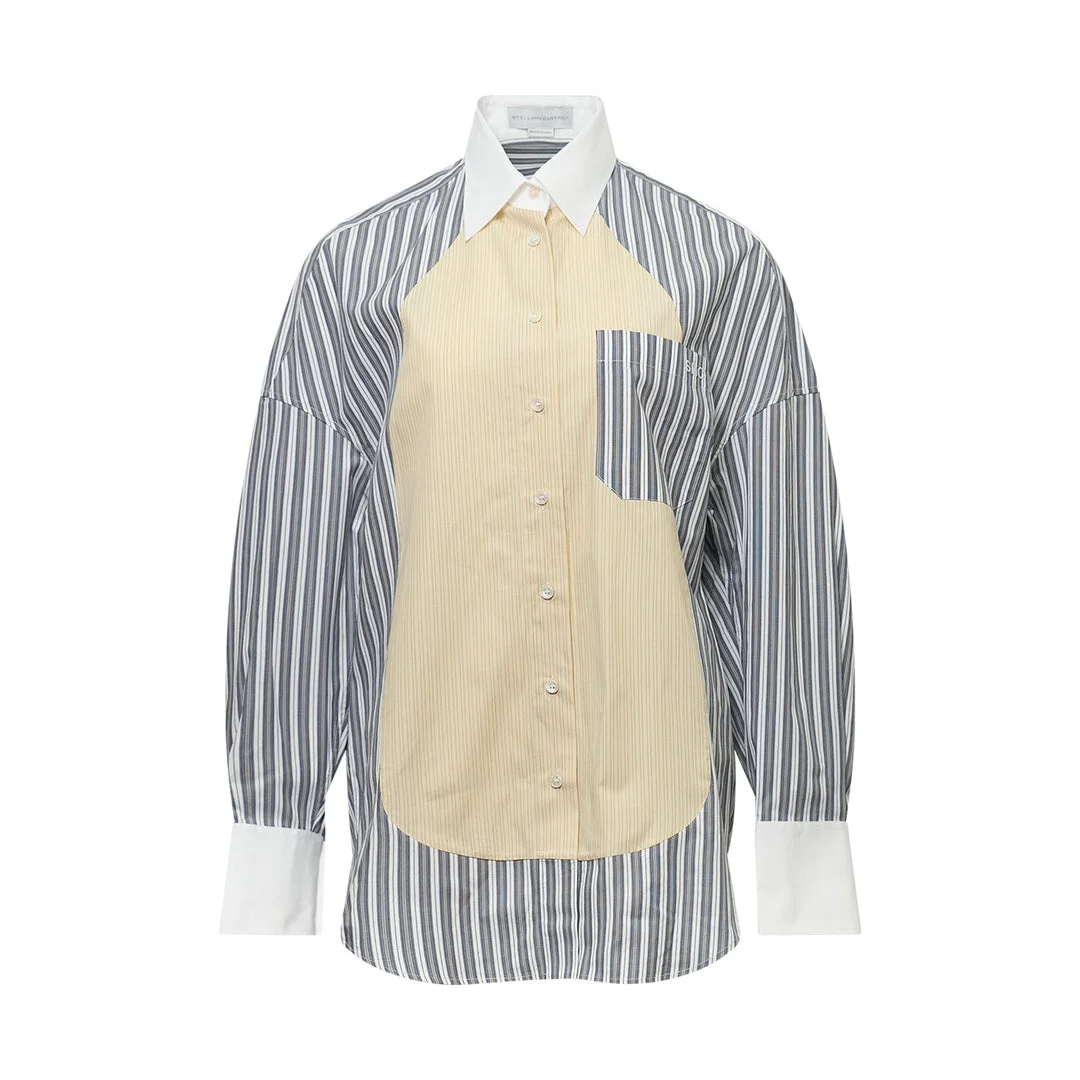 600076687STR034 / PS26-620181/3HJ107/1195 - Contrast stripe panel design - Color-blocked construction - Classic point collar - Button-front closure - Long sleeves with button cuffs - Chest pocket detail - Organic cotton construction - Relaxed fit Stella McCartney Cotton Mixed Stripe Shirt delivers contemporary sophistication with architectural design and sustainable craftsmanship. Crafted from premium organic cotton featuring contrasting stripe panels and color-blocked construction with a distinctive layered silhouette. The deconstructed aesthetic and signature McCartney tailoring create a bold statement piece for modern wardrobes.