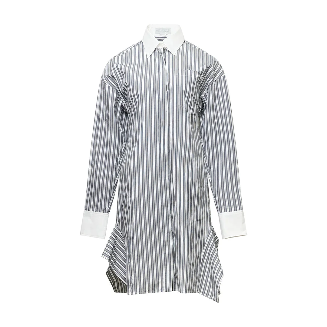 600076701STR034 / PS26-6A0635/3HJ107/1195 - Organic cotton construction - Vertical stripe pattern - Contrast white collar and cuffs - Button-front closure - Long sleeves with button cuffs - Relaxed shirt dress fit - Asymmetrical hem detail Stella McCartney Cotton Stripe Dress delivers sustainable luxury with contemporary tailoring and effortless sophistication. Crafted from premium organic cotton in classic blue and white vertical stripes, featuring contrast white collar and cuffs for polished refinement. The relaxed shirt dress silhouette embodies the brand's commitment to ethical fashion without compromising on style.
