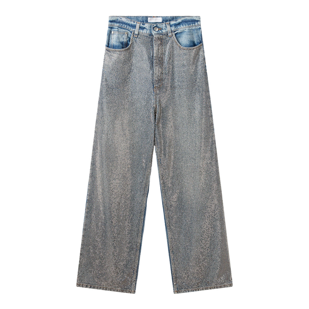 Oversized Rhinestone-Embellished Slouchy Denim Jeans