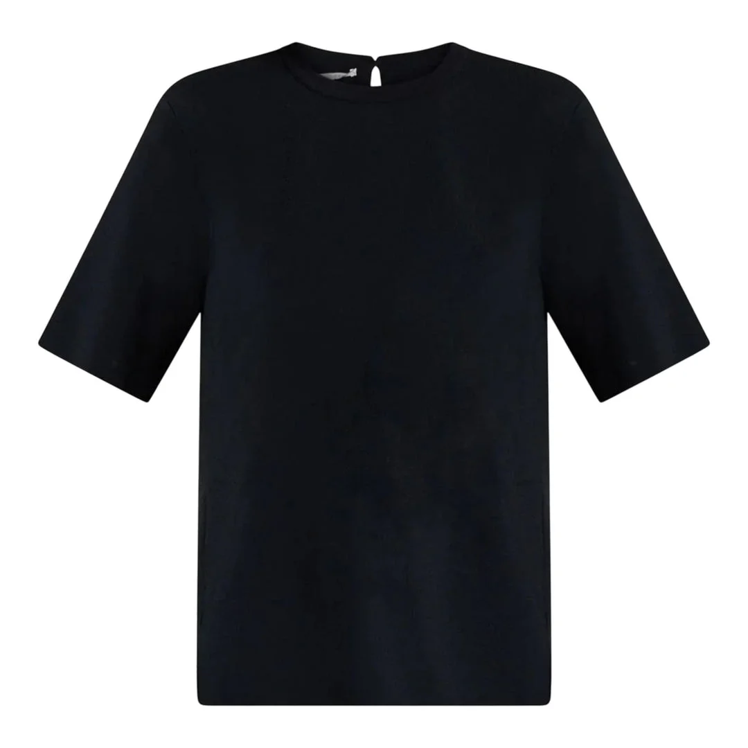 600042601BLKXXS / 6K0607/3S2462/1000 - Compact knit construction - Short sleeves - Round neckline - Back keyhole closure with button - Relaxed fit - Sustainable materials Stella McCartney Iconic Compact Knit Top delivers contemporary luxury with sustainable craftsmanship and elevated comfort. Crafted from premium compact knit fabric in versatile black, featuring the brand's signature minimalist aesthetic and refined construction. The structured silhouette and luxurious hand-feel create a sophisticated foundation piece for modern wardrobes.