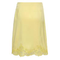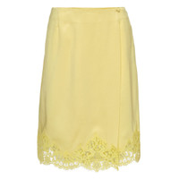 Iconic wrap-effect lace-trimmed satin skirt Yellow