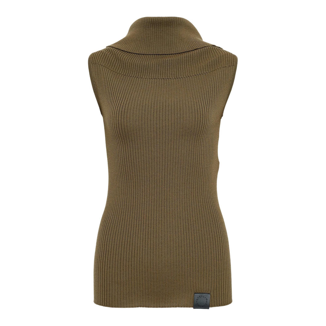 600073968OLV0XS / AW25-6K1120/3S2529/3032 - High turtleneck collar - Sleeveless design - Ribbed wool construction - Form-fitting silhouette - Sustainable materials - Side seam detailing The Stella McCartney Light Rib Wool Top delivers sustainable luxury with refined minimalist design. Crafted from premium ribbed wool in earthy olive green, featuring a structured turtleneck collar and sleeveless silhouette. The form-fitting construction and eco-conscious materials showcase the brand's commitment to ethical fashion without compromising style.