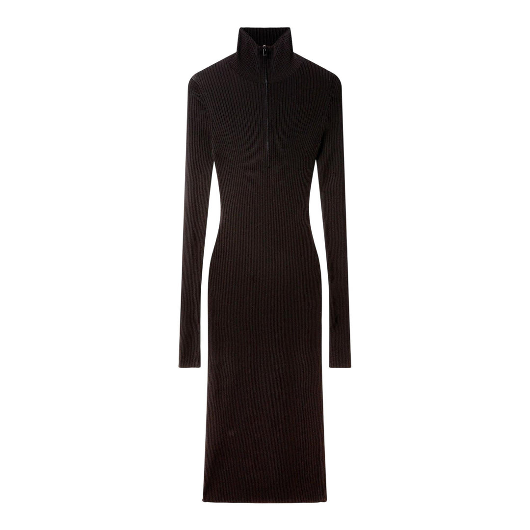 600073964BLK0XS / AW25-6K1112/3S2612/1000 - High neck with front zip closure - Long sleeves - Stretch ribbed knit construction - Form-fitting silhouette - Midi length - Sustainable fabric composition The Stella McCartney Light Stretch Rib Knit Midi Dress delivers contemporary elegance with sustainable luxury craftsmanship. Made from premium stretch ribbed knit fabric in sophisticated black, featuring a high-neck design with front zip closure. The form-fitting silhouette and midi length create a versatile statement piece perfect for modern wardrobes.