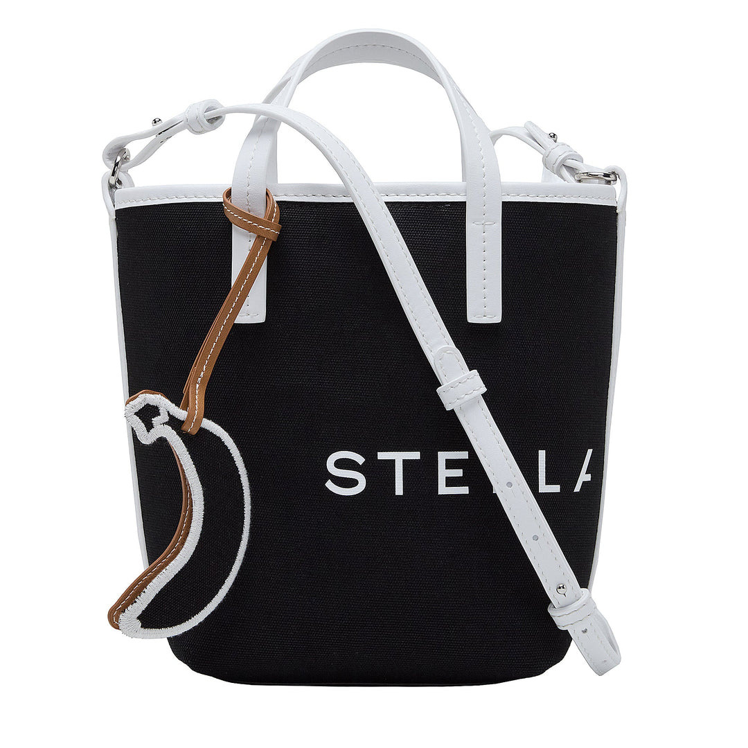 Stella McCartney Logo Bucket Bag Eco Canvas Crafted from BananatexA®, the worlda€™s first durable, technical fabric made purely from the naturally grown AbacA¡ plants, and fitted with recycled brass hardware. This monochromatic number provides the perfect muted, tonal palette to sling across any sustainable ensemble, from day to night. Stow your phone and daily essentials inside.