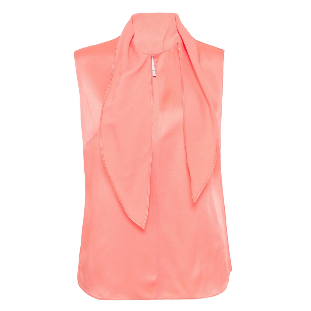 600076732PNK036 / PS26-6T0285/3FU302/6603 - Detachable tie closure at neckline - Sleeveless design - Luxurious satin construction - Concealed back zip closure - Relaxed fit through body - Classic crew neckline The Stella McCartney Satin Tie Top delivers effortless sophistication with contemporary feminine design. Crafted from luxurious coral satin with a sleeveless silhouette, featuring a detachable tie closure at the neckline for versatile styling. The fluid drape and premium finish create an elevated wardrobe essential for modern luxury dressing.