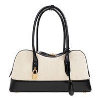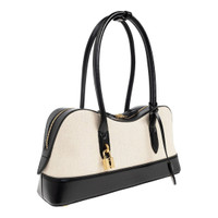 600071318NAT0OS / PF25-7B0138/WP0555/9500 - Cotton canvas construction with leather trim - Dual top handles - Top zip closure - Gold-tone padlock charm - Structured dome shape - Medium size capacity - Interior compartments - Cruelty-free materials The Stella McCartney Stella Ryder Medium Bag delivers sophisticated luxury with sustainable craftsmanship and ethical design principles. Crafted from premium cotton canvas with contrasting black leather trim, featuring the brand's signature structured silhouette and gold-tone hardware accents. The spacious interior and dual top handles create a versatile statement piece that embodies the house's commitment to cruelty-free luxury.