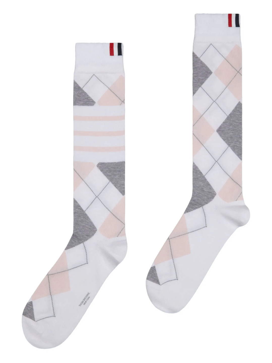 Thom Browne Argyle 4-Bar Mid Calf Socks Women