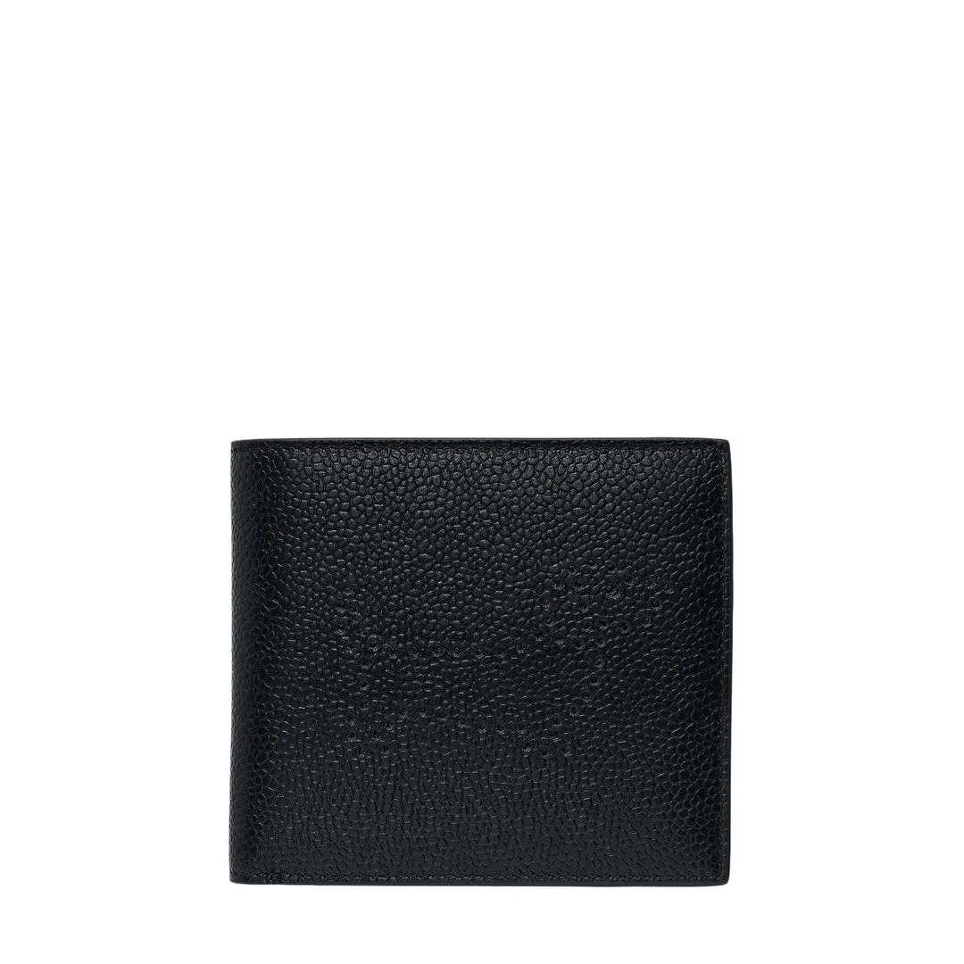 600077552BLK0OS / PS26-UAW086A-00198/00/001 - Premium black pebbled leather construction - Perforated leather detailing - Traditional billfold design - Multiple card slots - Bill compartment - Compact profile Thom Browne Billfold With Perforated Hector delivers sophisticated wallet functionality with distinctive perforated leather construction. Crafted from premium black pebbled leather featuring subtle perforated detailing throughout, showcasing the brand's signature attention to refined craftsmanship. The structured silhouette and luxurious hand-feel create an essential accessory for the discerning gentleman.