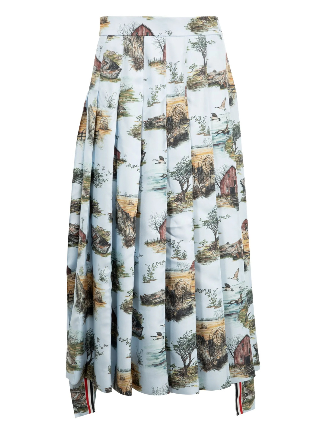 Thom Browne Calf Length Classic Back Pleated Skirt Women