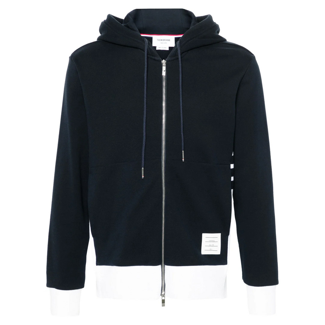 Thom Browne Classic 4-Bar Jersey Zip Up Hoodie