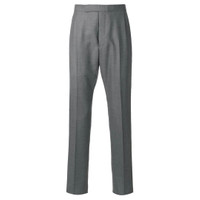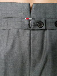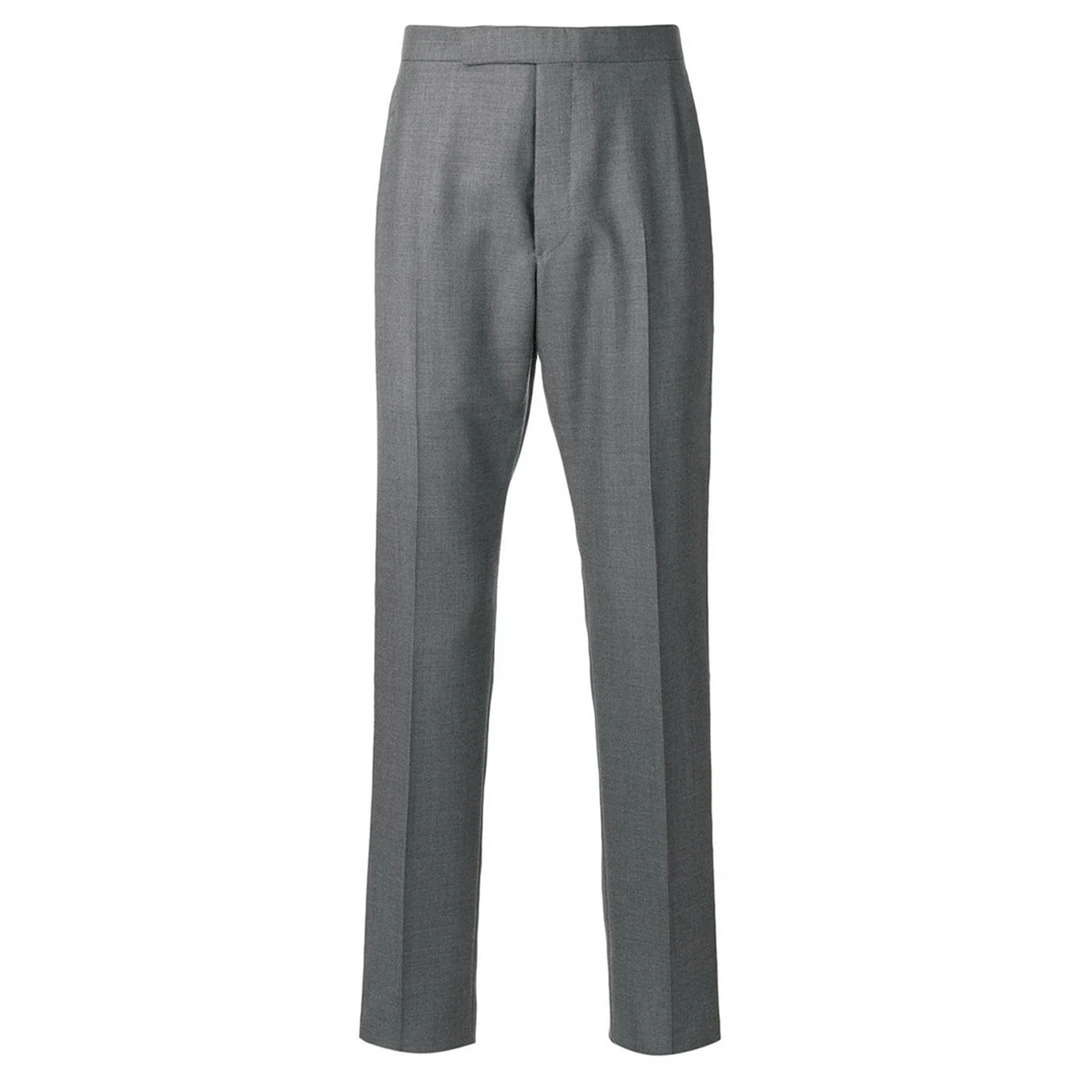 Thom Browne Classic Backstrap Trousers Elevate your style with Thom Browne's Classic Backstrap Trousers. Crafted with premium wool, these pants feature a refined front button and zipper closure. The design includes practicality with two side slash pockets and two welt pockets at the back. Complete with a belt loop waistband and a distinctive back martingale for a touch of sophistication. - Colour: Grey - Composition: 50% Polyester, 50% Wool - Front button - Zipper closure - Two side slash pockets - Two welt pockets on back - Belt loops waistband - Back martingale