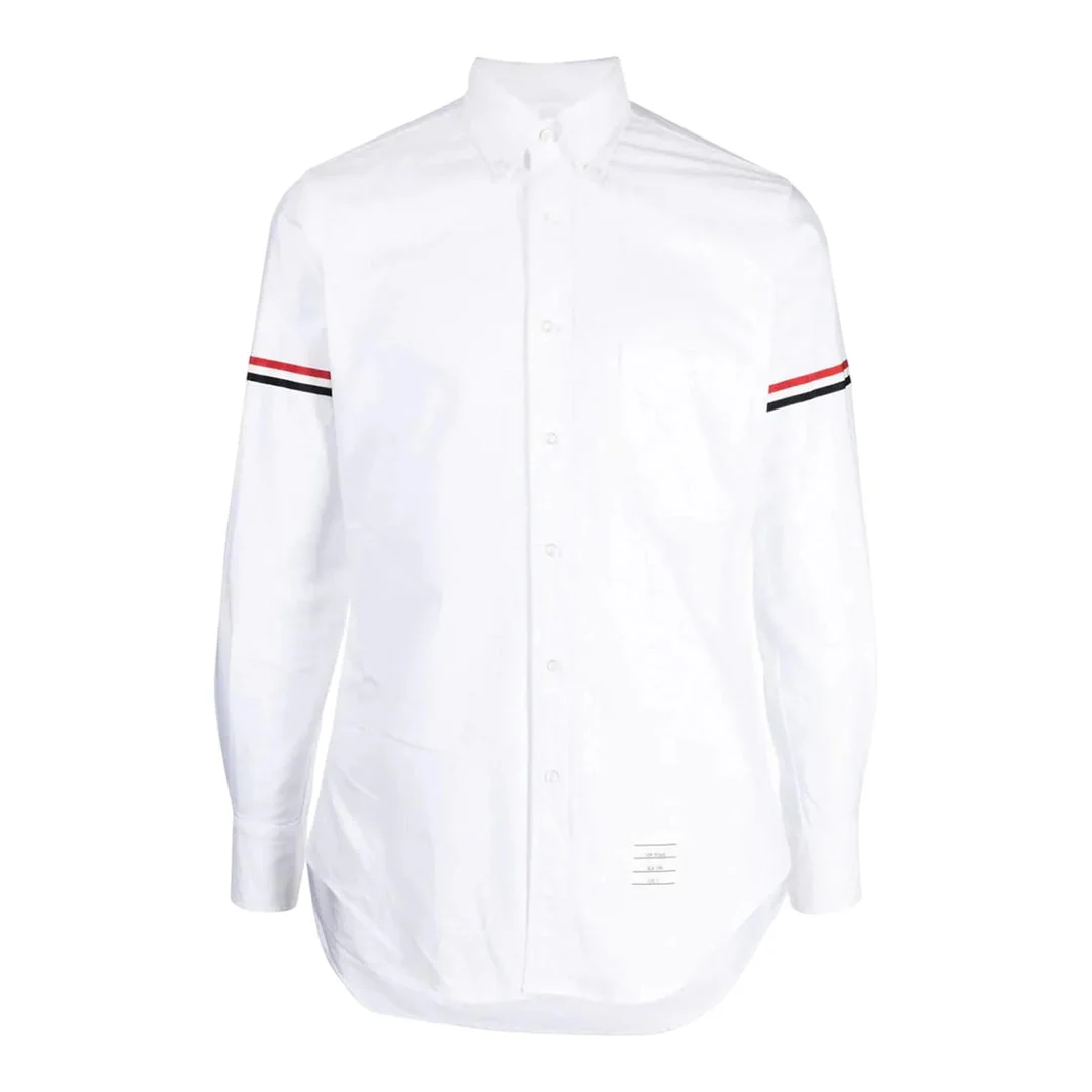 600034497WHT000 / MWL150E-F0313/00/100 - Classic point collar - Long sleeves with button cuffs - Full button-front closure - Signature tricolor stripe detailing on sleeves - Premium cotton poplin construction - Classic tailored fit - Thom Browne label detailing The Thom Browne Classic Fit Shirt delivers refined American tailoring with signature preppy sophistication. Crafted from crisp white cotton poplin featuring the brand's iconic tricolor sleeve stripes in red, white, and navy. The classic collar construction and precise fit embody Thom Browne's heritage-inspired aesthetic with contemporary luxury.