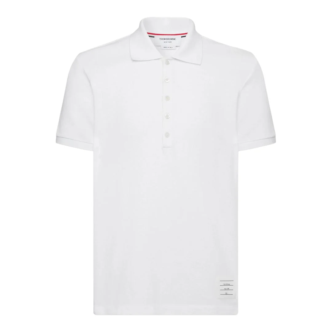600068433WHT001 / MJP110P-00050/00/100 - Premium cotton pique construction - Signature 4-bar stripe detail - Grosgrain button placket - Ribbed collar and cuffs - Side vents - Tailored fit - Mother-of-pearl buttons The Thom Browne Classic Pique 4-Bar Polo delivers signature preppy luxury with meticulous tailoring and iconic brand heritage. Crafted from premium cotton pique in crisp white, featuring the brand's distinctive 4-bar stripe detail and refined collar construction. The structured silhouette and signature grosgrain placket elevate traditional polo styling with contemporary sophistication.