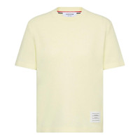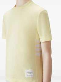 600069028YEL036 / CP-FJS207A-00050/00/740 - Premium pique cotton construction - Signature 4-bar stripe detailing at collar - Short sleeves - Crew neckline - Thom Browne label patch - Relaxed fit - Ribbed collar trim The Thom Browne Classic Pique 4-Bar Tee delivers preppy luxury with signature American sportswear heritage. Crafted from premium pique cotton in soft yellow, featuring the iconic 4-bar stripe detailing at the collar and subtle label accent. The structured pique texture and relaxed fit create a refined casual essential for contemporary wardrobes.
